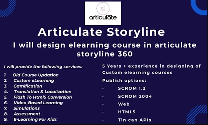 Welcome to my Fiverr gig, where I offer my expertise as a professional Articulate Storyline Course Creator. With a proven track record of creating engaging e-learning content, I am here to help you bring your vision to life and provide your learners with a dynamic and interactive educational experience.